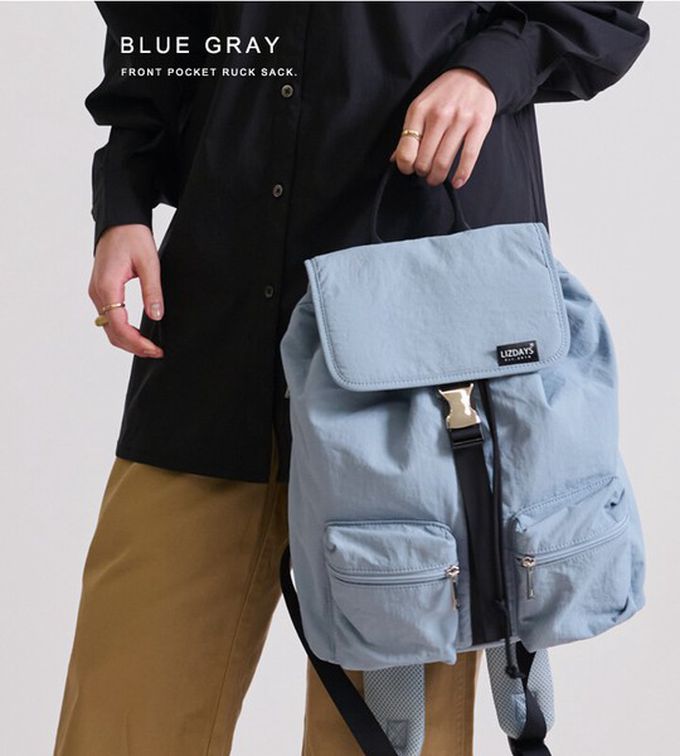 日本 LIZDAYS - 輕量簡約防潑水多口袋後背包-煙燻藍 (30x35cm)