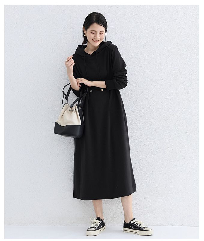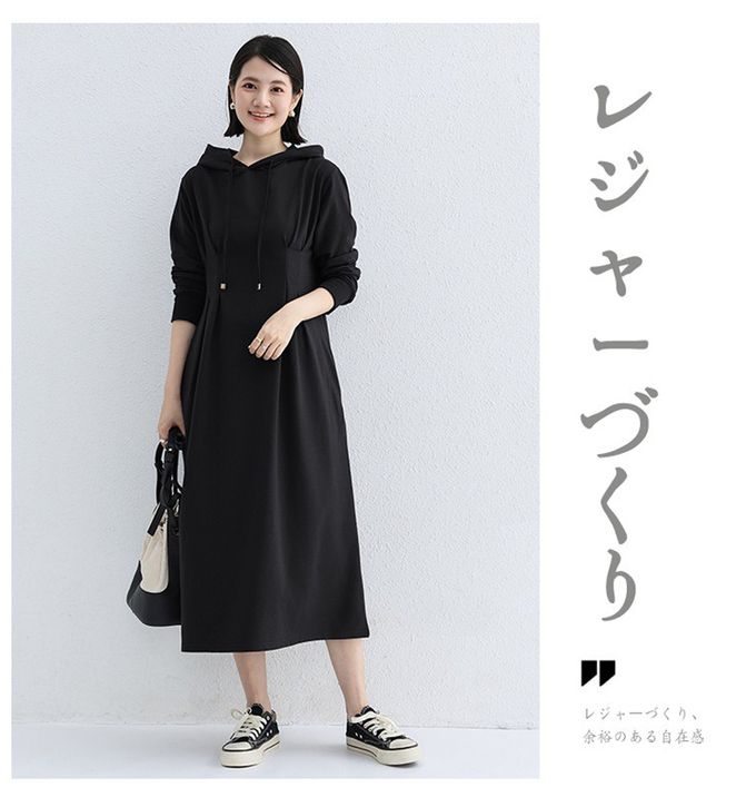 • 品名:休閒感抓褶修身剪裁長袖連帽洋裝