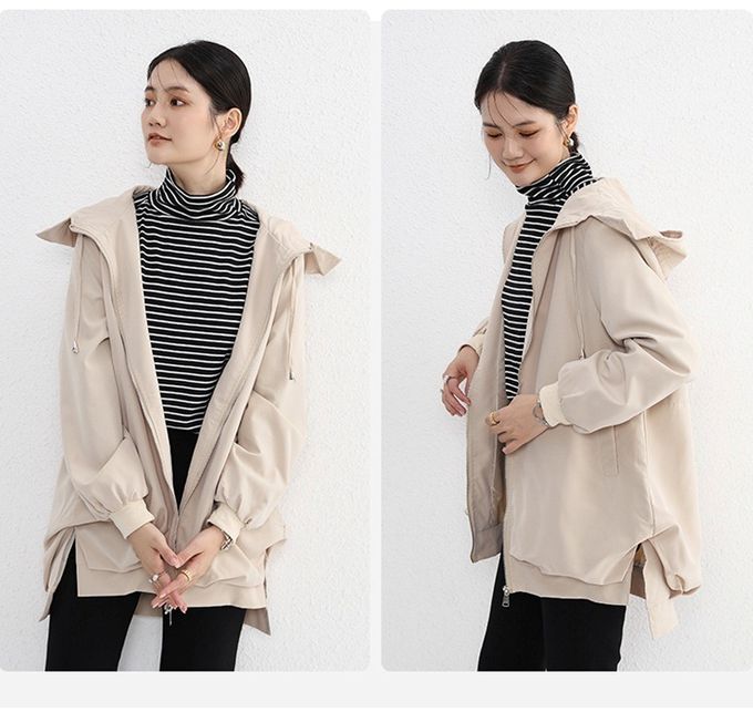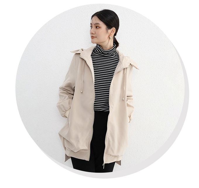 • 品名:3D修身剪裁側開衩連帽風衣外套