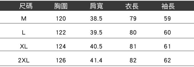 尺寸表單位皆為公分(cm),商品為平鋪測量,實際尺寸會因布料彈性、水洗、測量起迄點等因素略有2-4cm誤差。