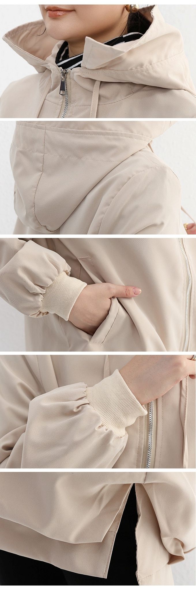 Yukié - 3D修身剪裁側開衩連帽風衣外套-淺杏