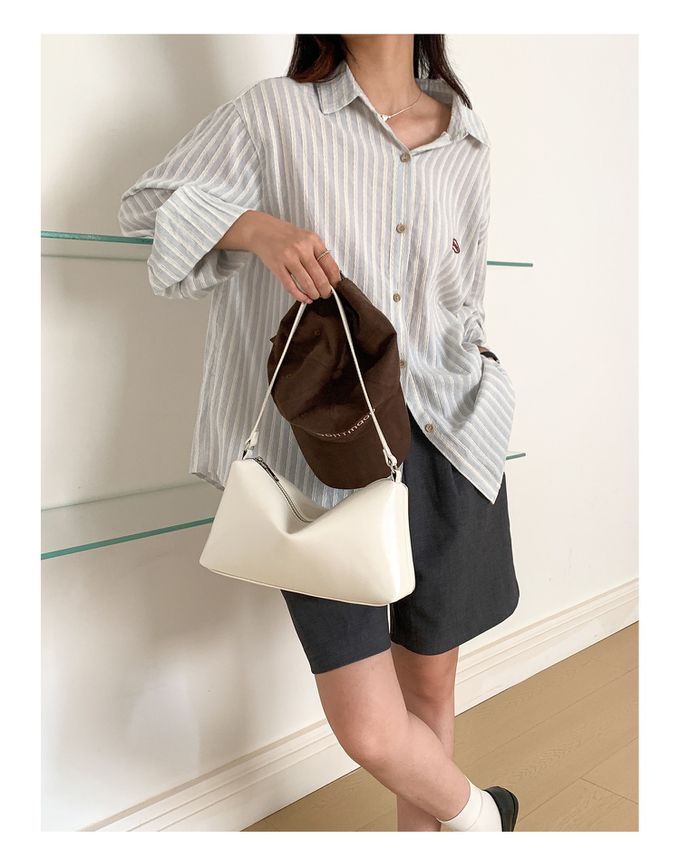 MORAE - 韓系小眾高級光澤感復古肩背包-白