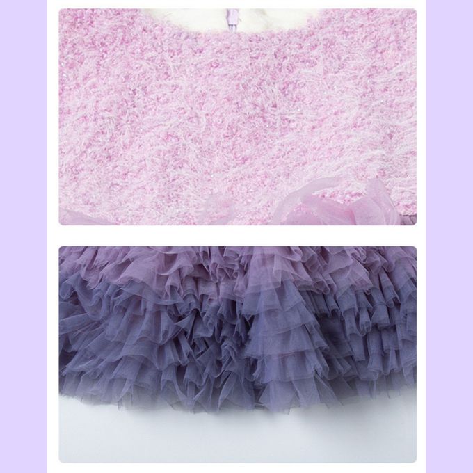 新年生日可愛漸層網紗蛋糕裙長袖洋裝-洋裝+長袖內搭(2件一組)-漸層馬卡龍粉色
