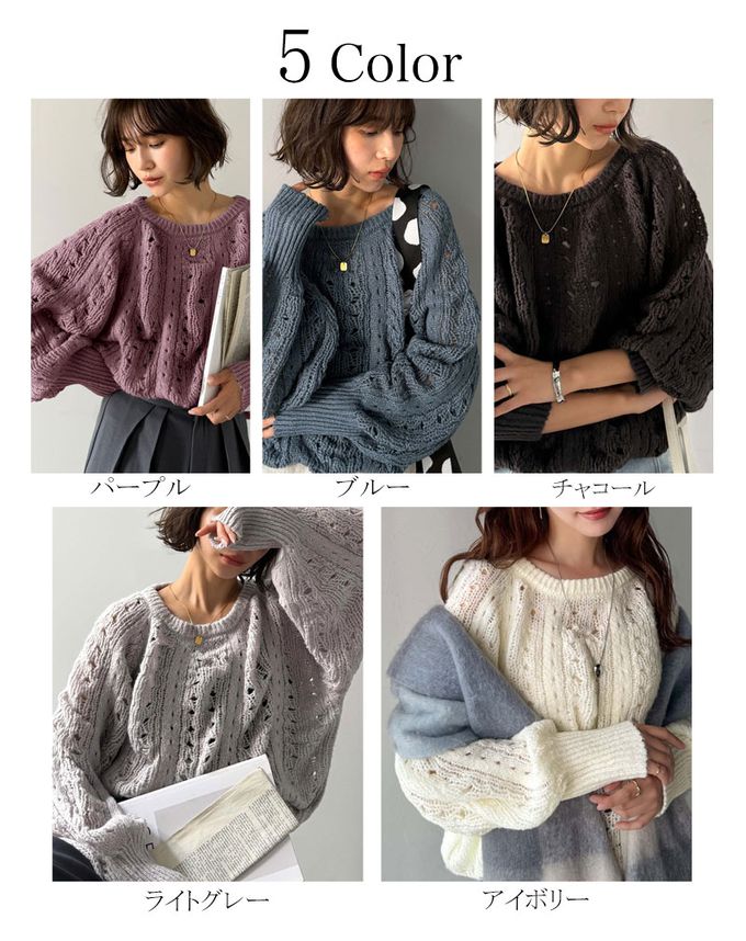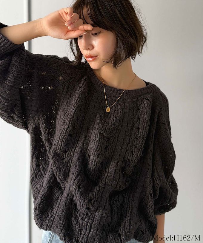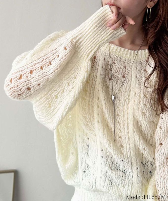 • 品名:蓬鬆鏤空寬袖針織上衣