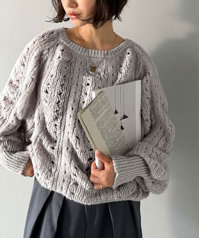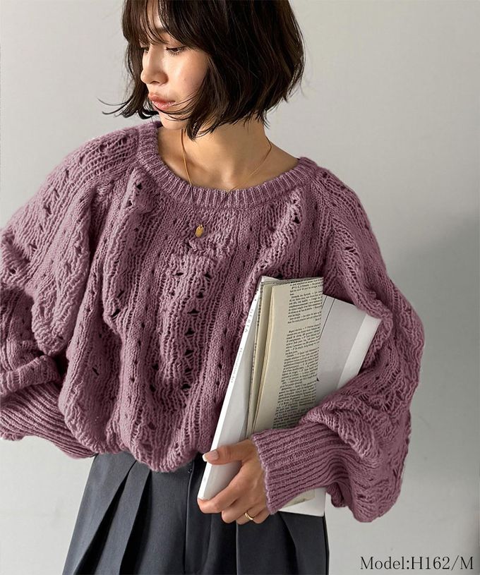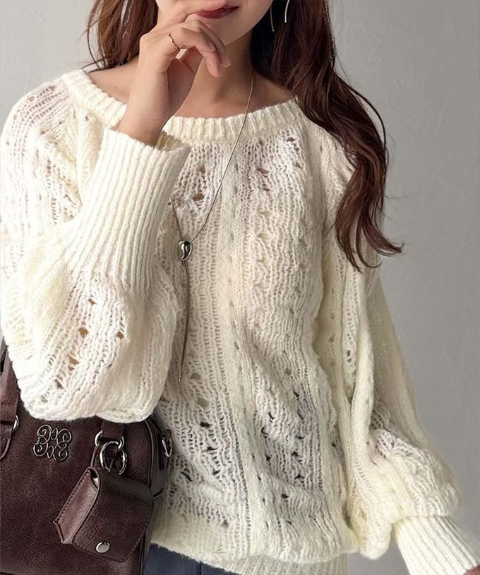 • 品名:蓬鬆鏤空寬袖針織上衣