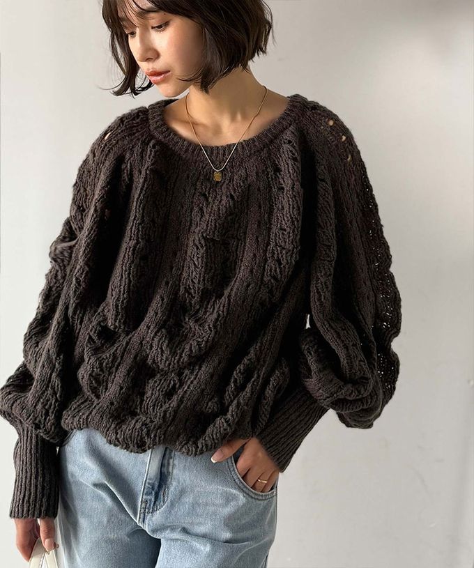• 品名:蓬鬆鏤空寬袖針織上衣