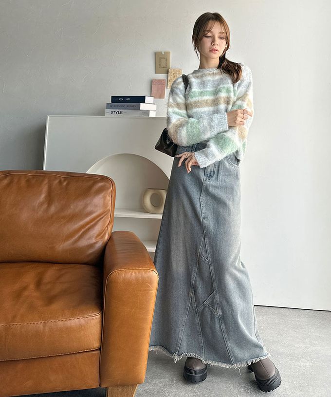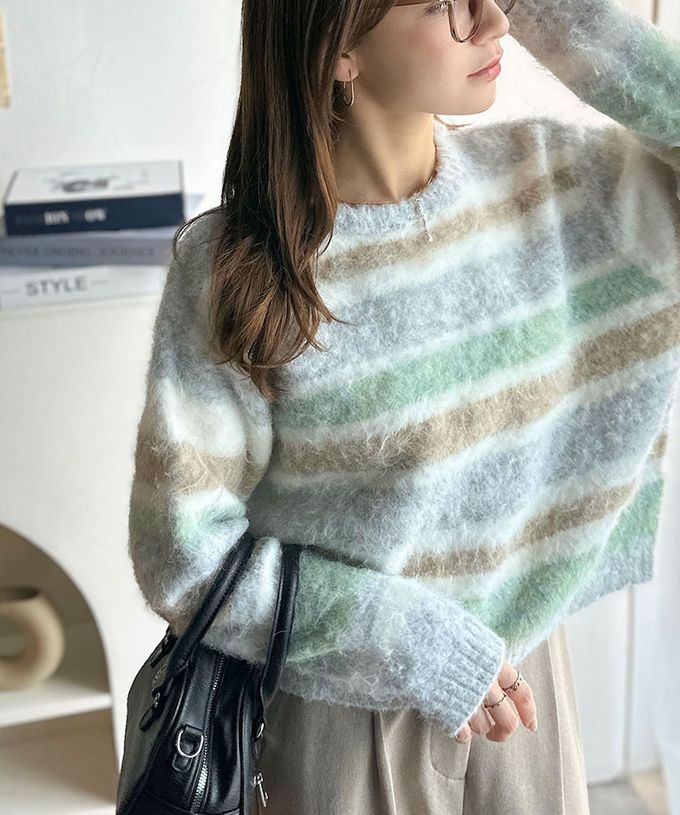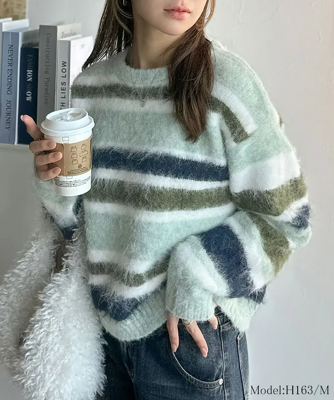 • 品名:絢麗混色條紋毛海針織上衣