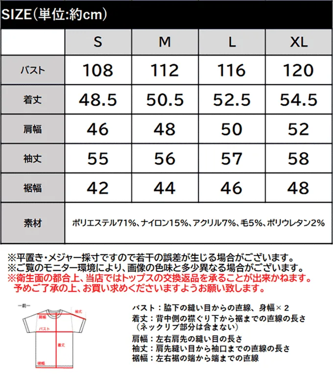 • 成分:聚酯纖維 71%、尼龍 15%、壓克力纖維 7%、羊毛 5%、彈性纖維 2%