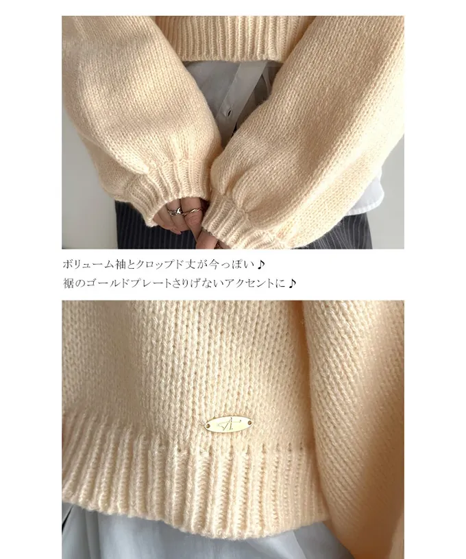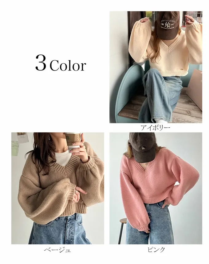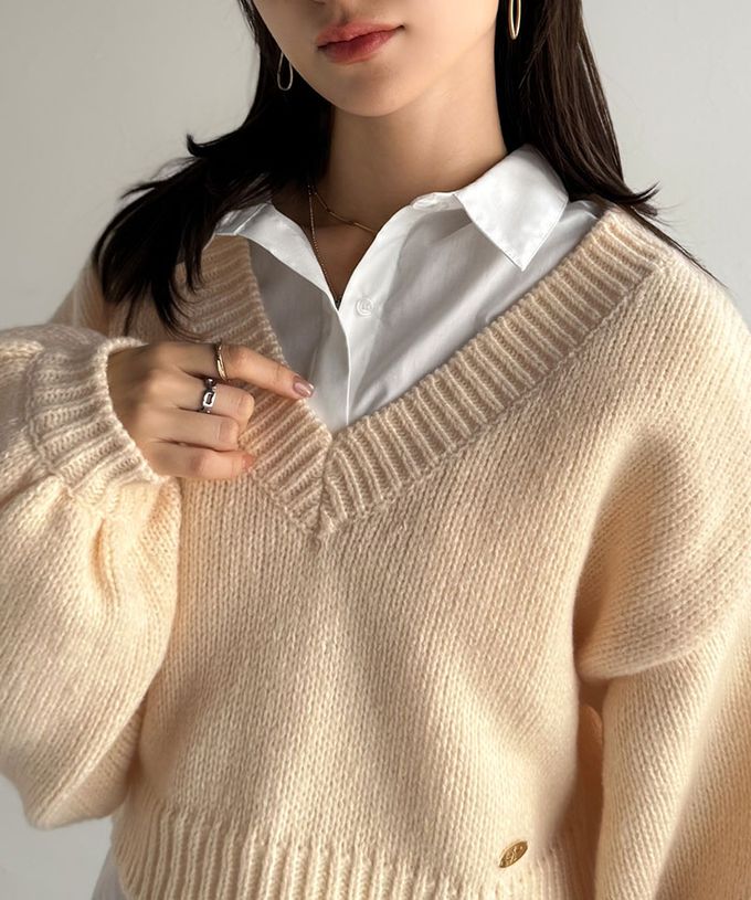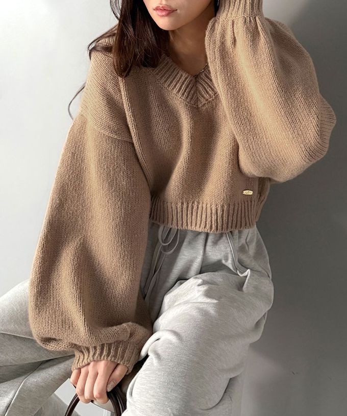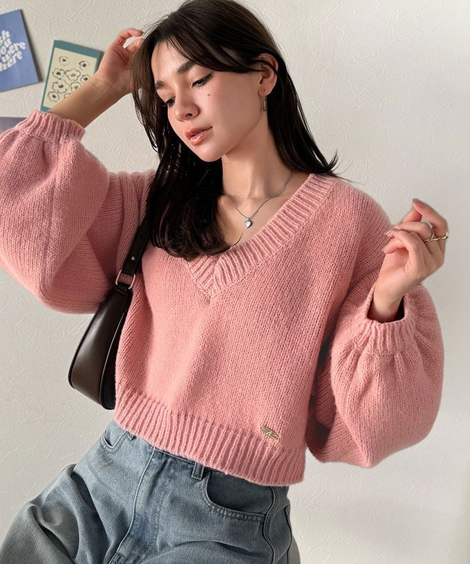 • 品名:可愛大V領短版粗針織上衣