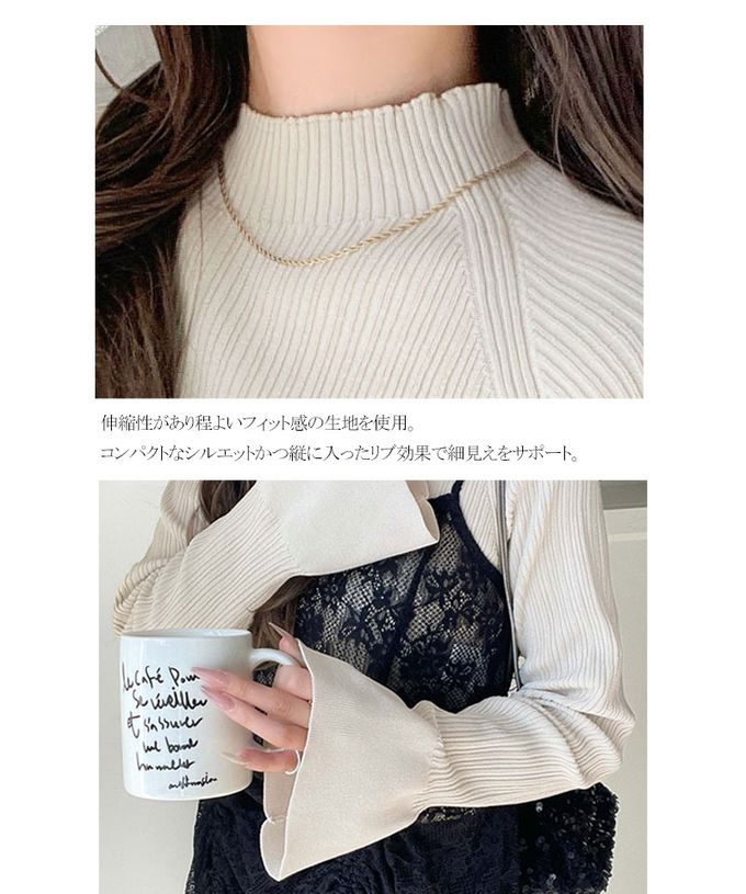 日本 Classical Elf - 美型小立領喇叭袖合身針織上衣-藍
