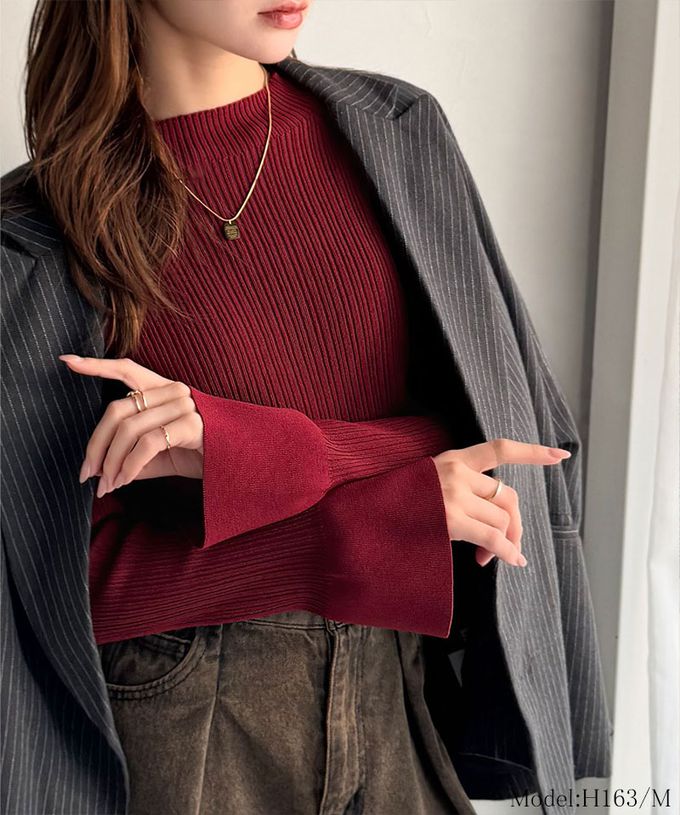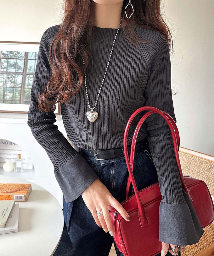 • 品名:美型小立領喇叭袖合身針織上衣