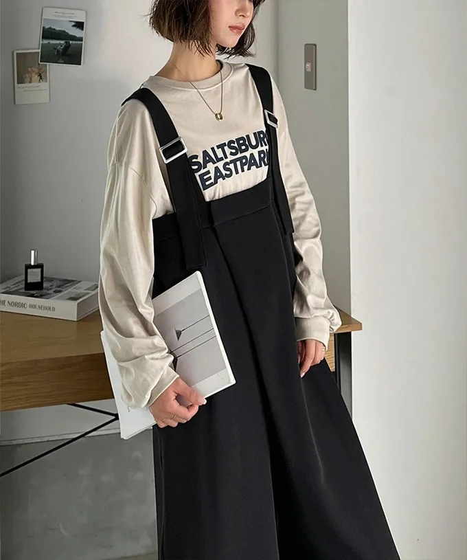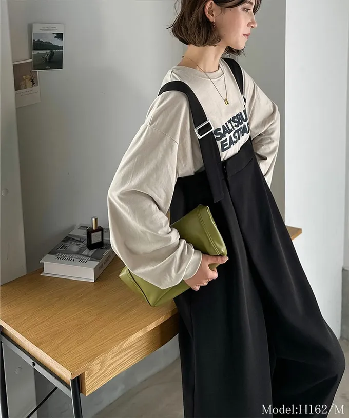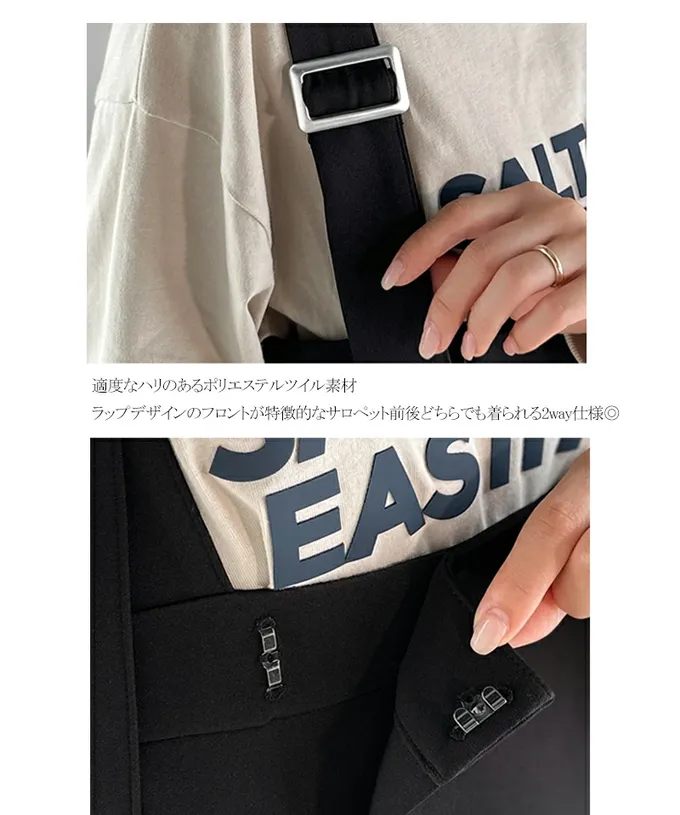 日本 Classical Elf - 前後2way工裝風俐落廓形連身褲-黑