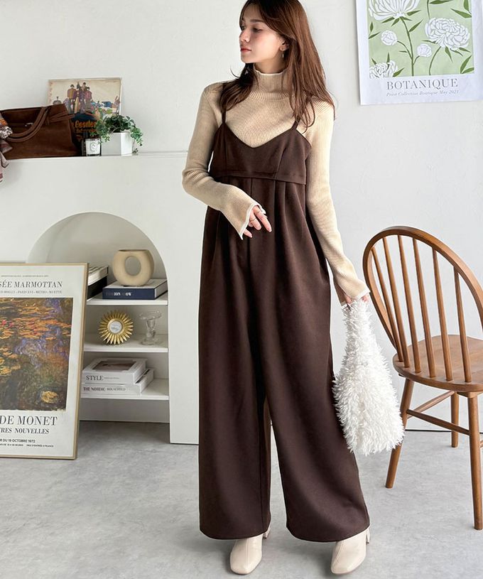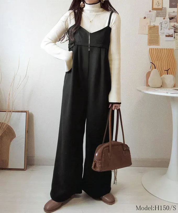 • 品名:高腰柔美感天鵝絨吊帶連身褲