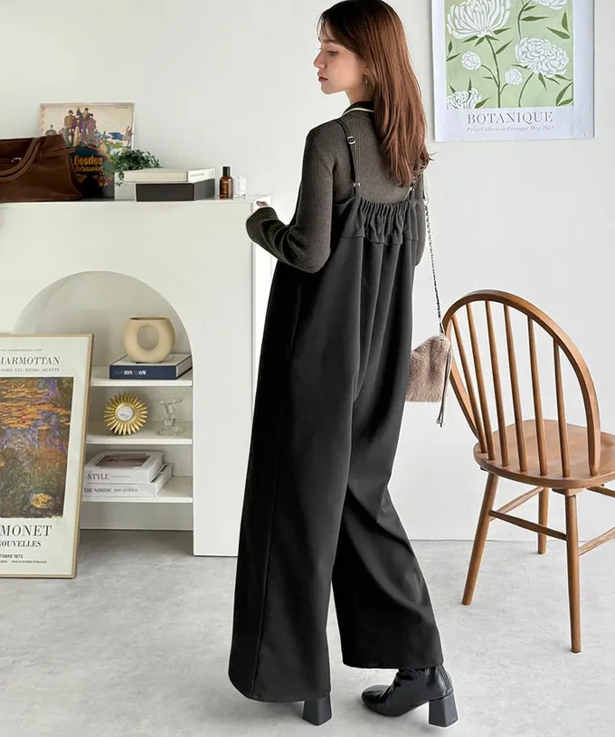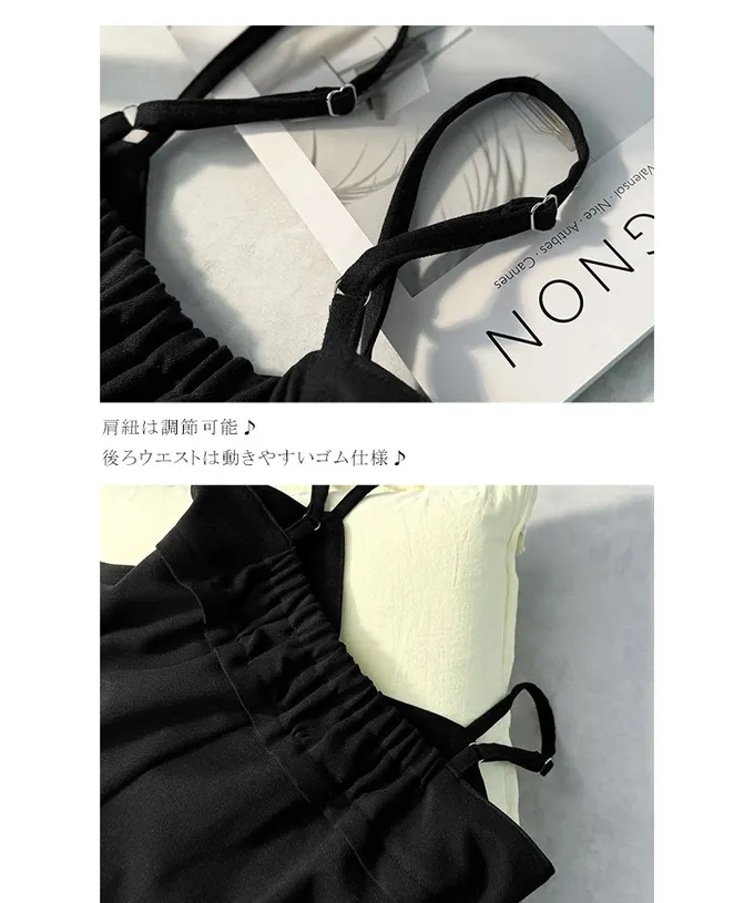 日本 Classical Elf - 高腰柔美感天鵝絨吊帶連身褲-黑