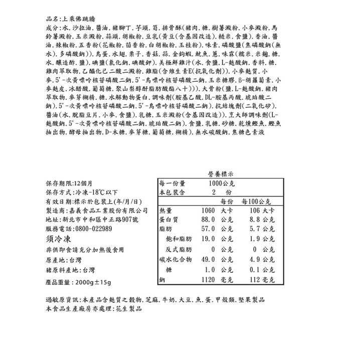 2026上乘佛跳牆CA-2000g 固形物800g