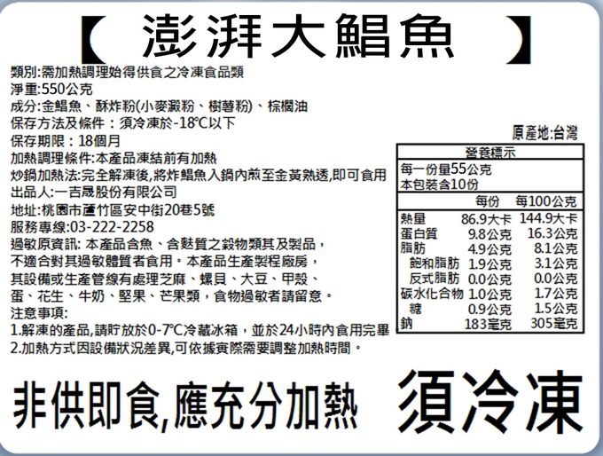 呷七碗 - 酥炸黃金鯧魚CL-熟重550g