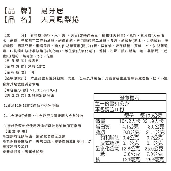 過敏原:詳見商品內文標示