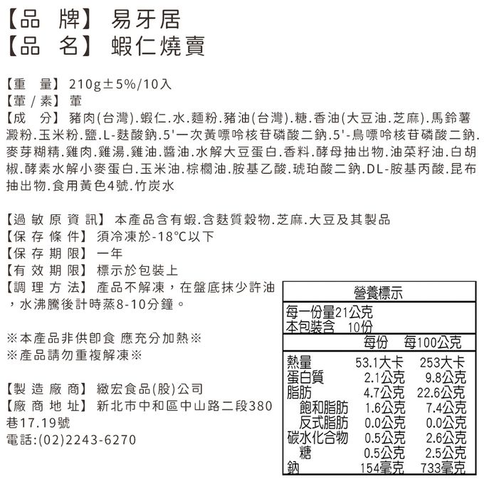 品名:蝦仁燒賣