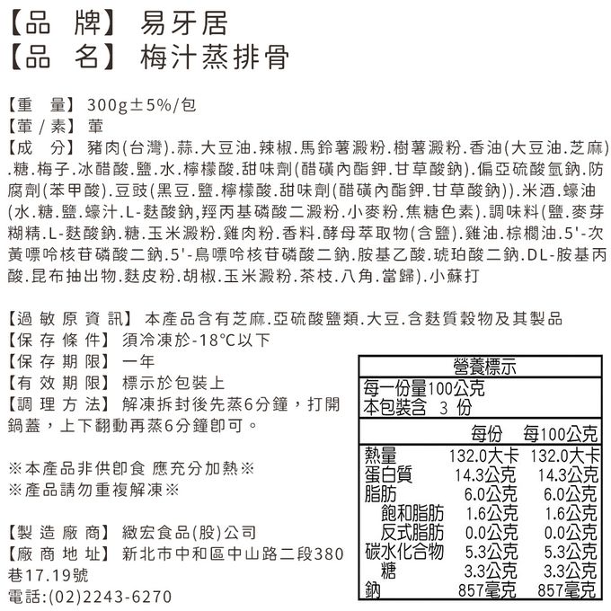 梅汁蒸排骨-300g/包
