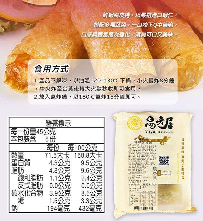 2.商品品名:易牙居鮮蝦腐皮捲6入