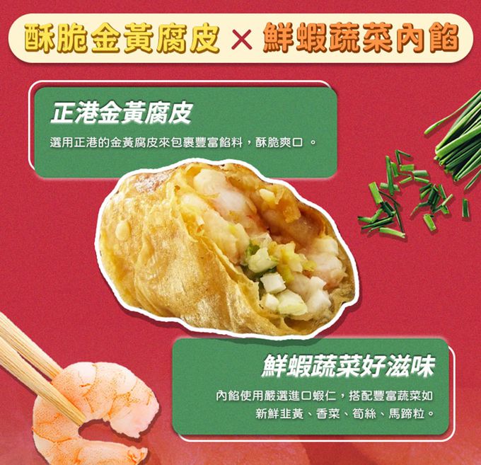 1.商品組合/規格:[吉晟嚴選]易牙居鮮蝦腐皮捲6入/盒