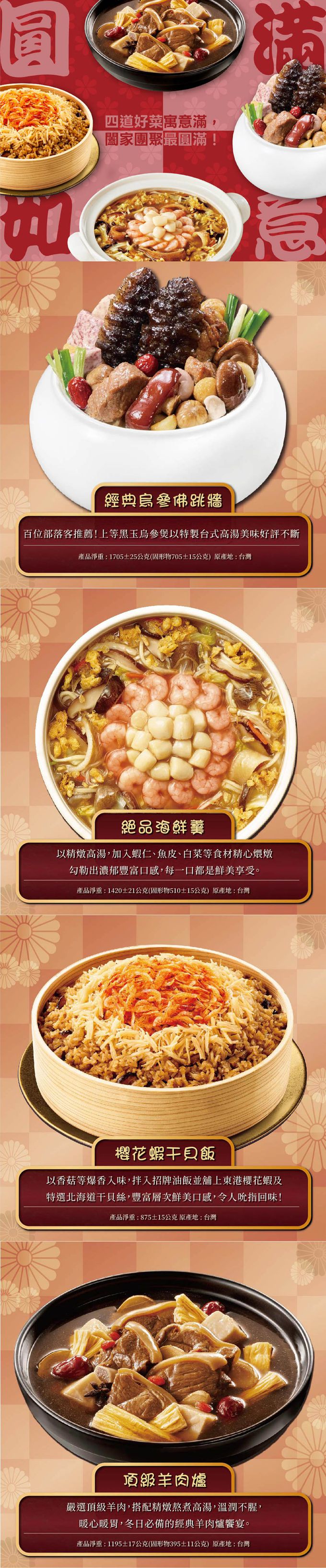 老協珍 - 圓滿如意D-(烏參佛跳牆+頂級羊肉爐+絕品海鮮羹+櫻花蝦干貝飯)