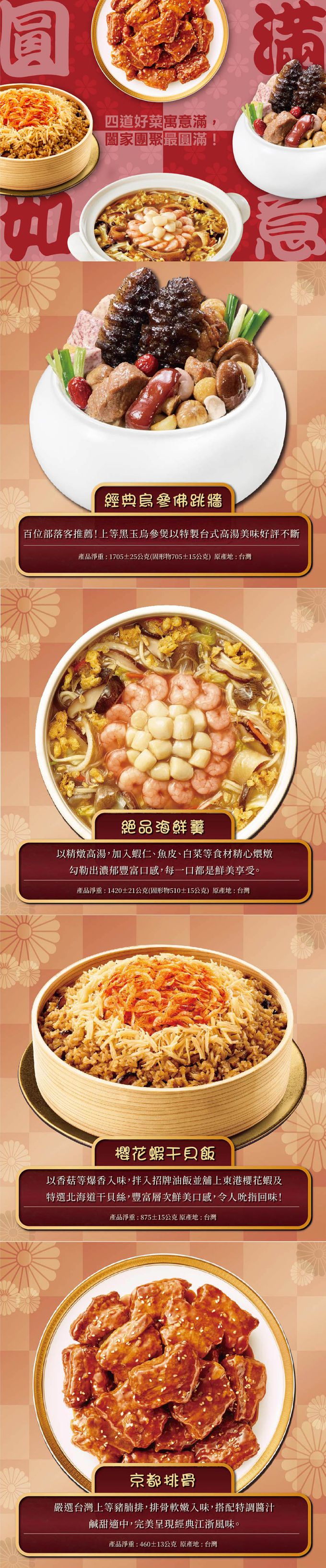圓滿如意B-(烏參佛跳牆+京都排骨+絕品海鮮羹+櫻花蝦干貝飯)