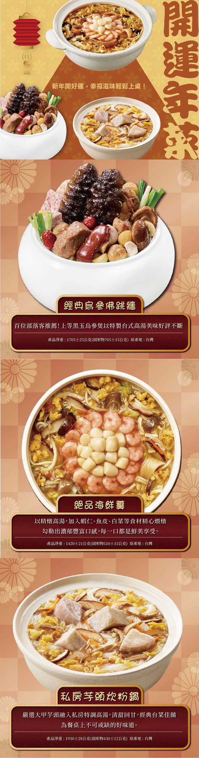 開運年菜H-(烏參佛跳牆+絕品海鮮羹+私房芋頭炊粉鍋)