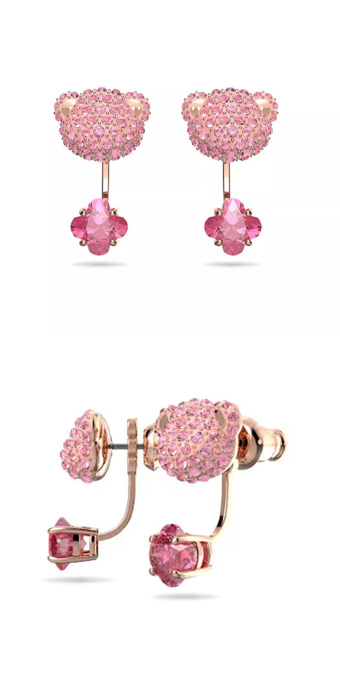幸運四葉草泰迪熊鑲鑽耳環 (粉紅)