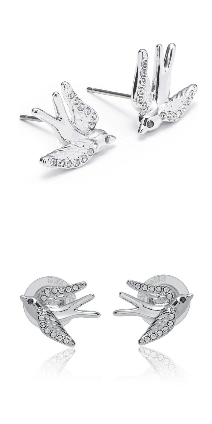 飛鳥鑲鑽耳環 (銀)