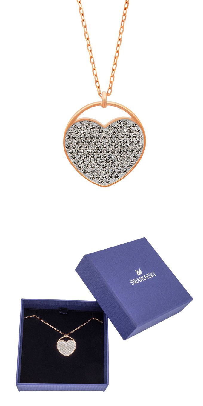 大款圓形愛心鑲白鑽墜鍊 (玫瑰金)