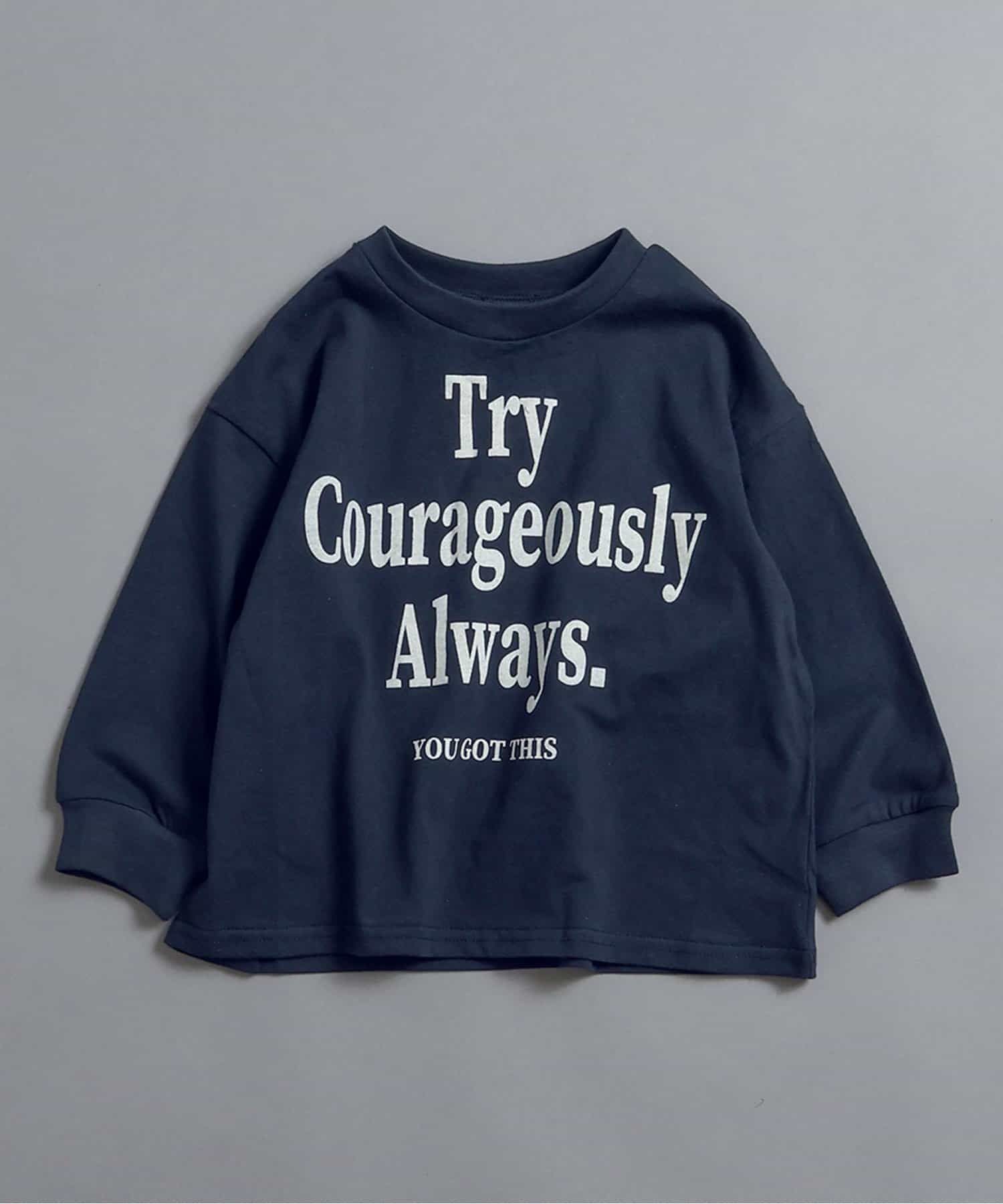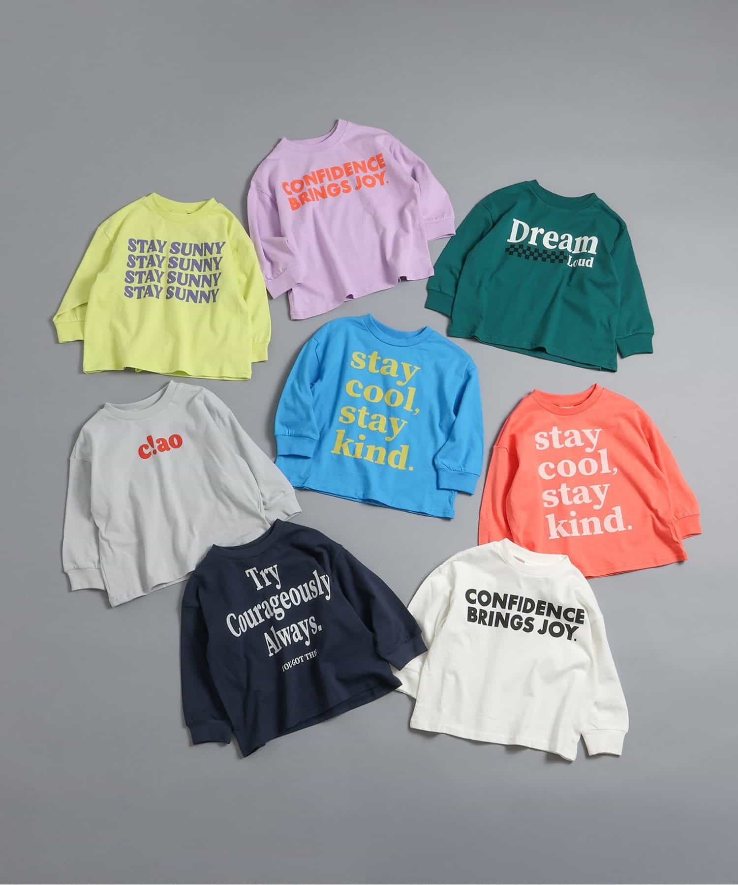 日本 BREEZE - 純棉正向英文標語長袖上衣-淺灰