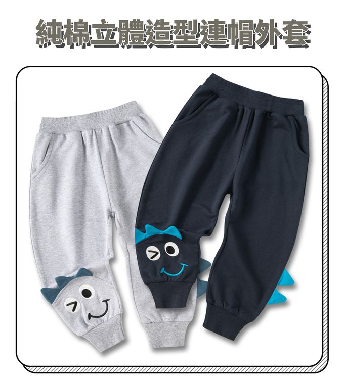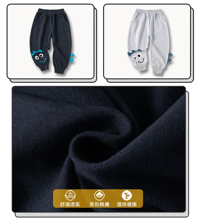 純棉休閒長褲-微笑恐龍-灰色