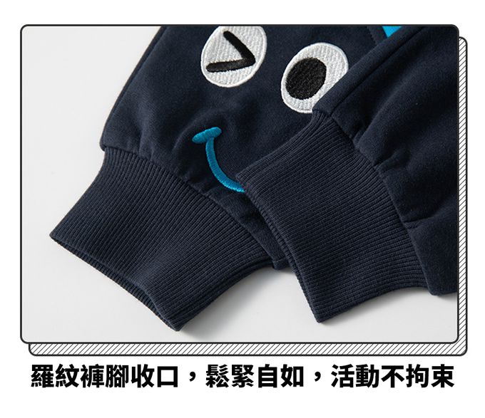 BE TOP - 純棉休閒長褲-字母Dinosaur-深藍色