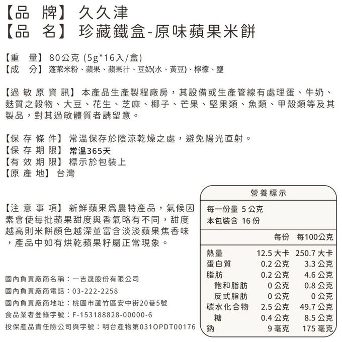 原味蘋果米餅-6盒-(16片/盒 附提袋)