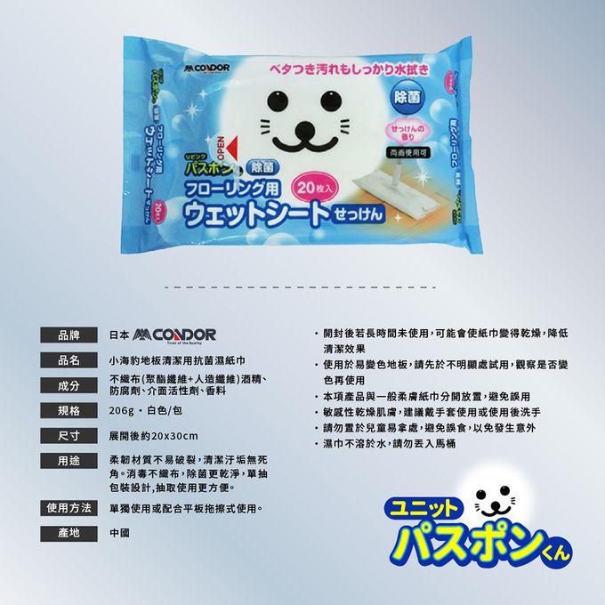 品名:小海豹 地板專用濕紙巾 三包組 (20x30cm/張)