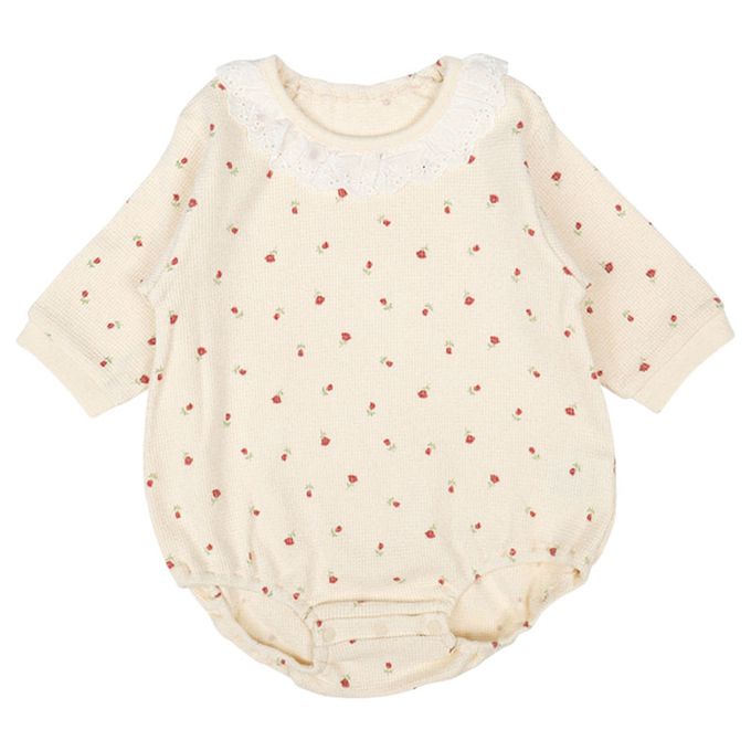akachan honpo - 長袖外出包屁衣-滿版印花-米白色