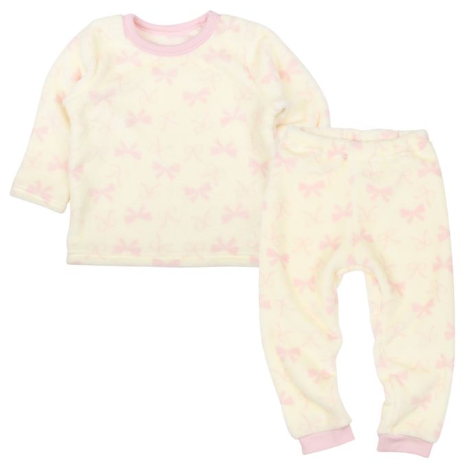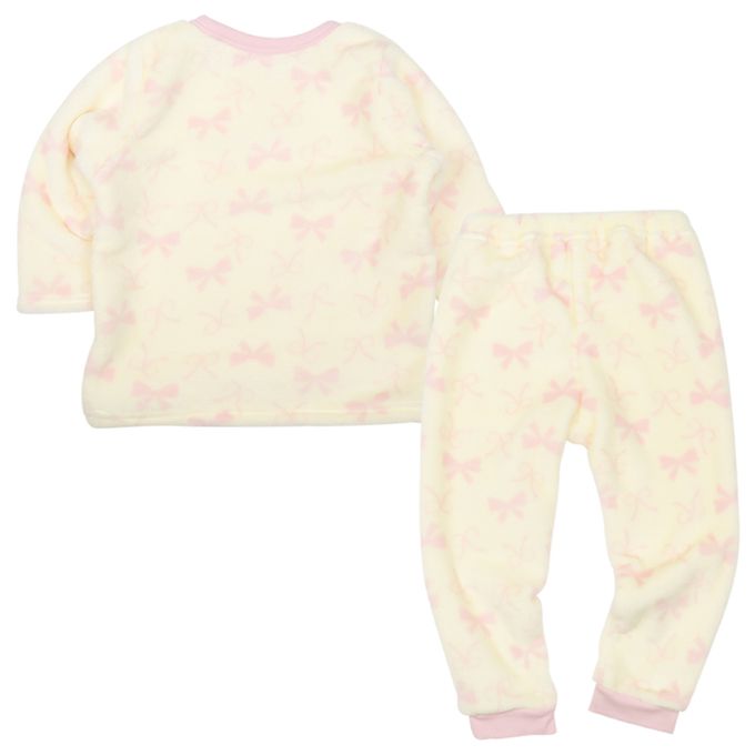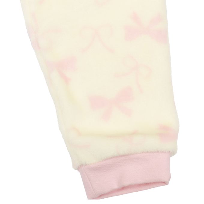 長袖刷毛家居服-蝴蝶結-象牙白色