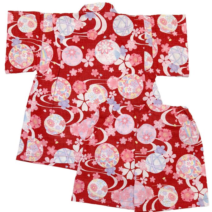 兒童兩件式甚平-手鞠-紅色
