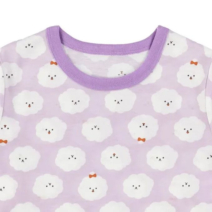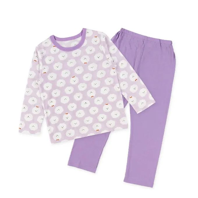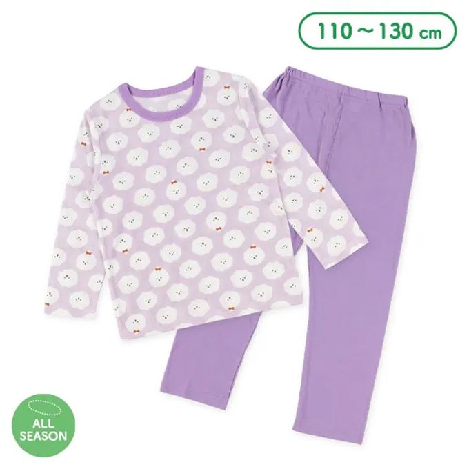 日本西松屋 - 四季款長袖睡衣/家居服套裝-毛茸茸狗-紫