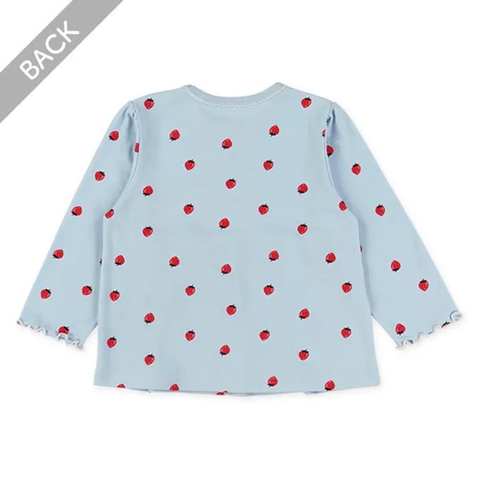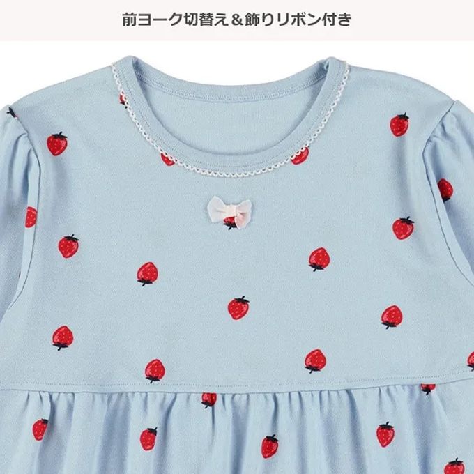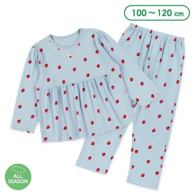日本西松屋 - 四季款長袖睡衣/家居服套裝-甜美草莓-水藍