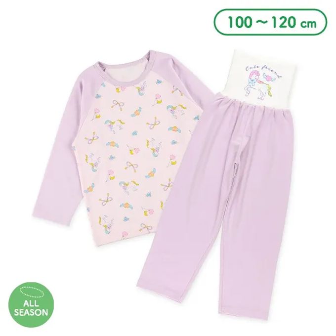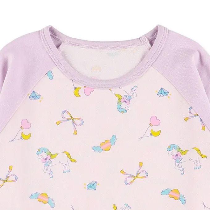 日本西松屋 - 腹卷 四季款長袖睡衣/家居服套裝-夢幻獨角獸-粉紫