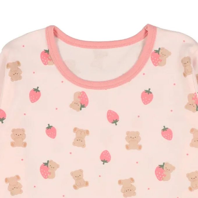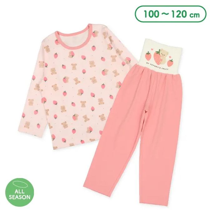 日本西松屋 - 腹卷 四季款長袖睡衣/家居服套裝-草莓熊熊-粉紅