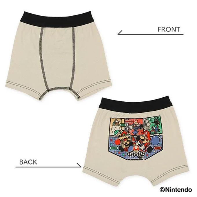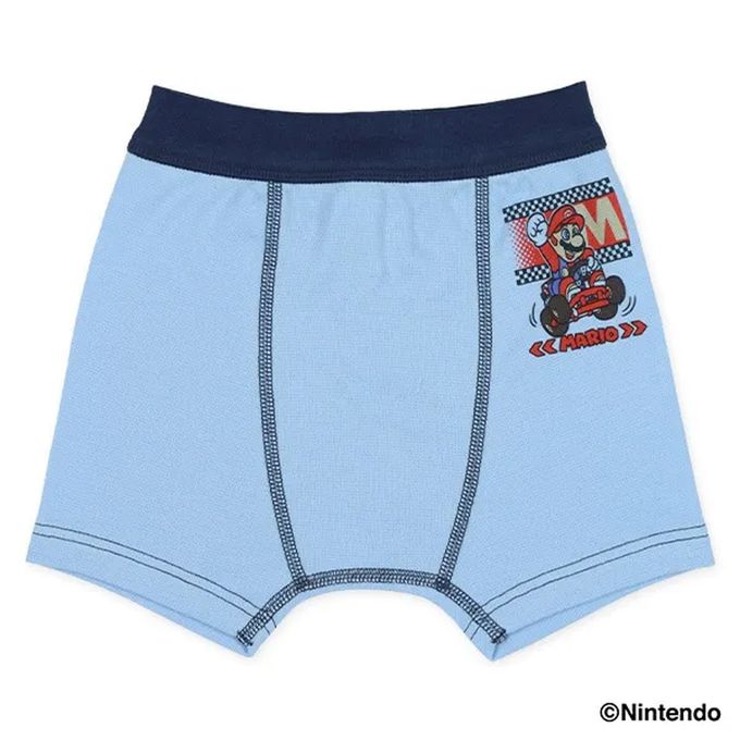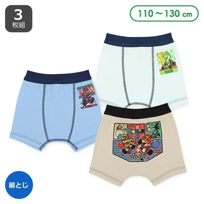 日本西松屋 - 前開式男孩四角內褲(3件組)-瑪利歐印花-藍卡其系