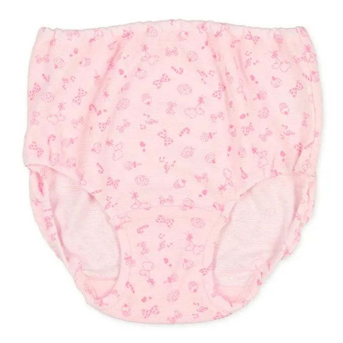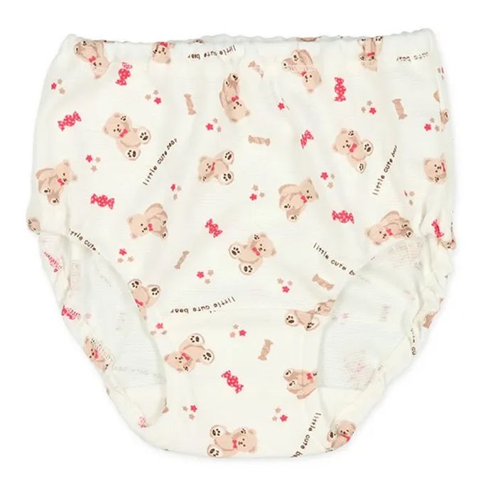 日本西松屋 - 混棉女孩印花內褲(5件組)-蛋糕小熊點點格紋