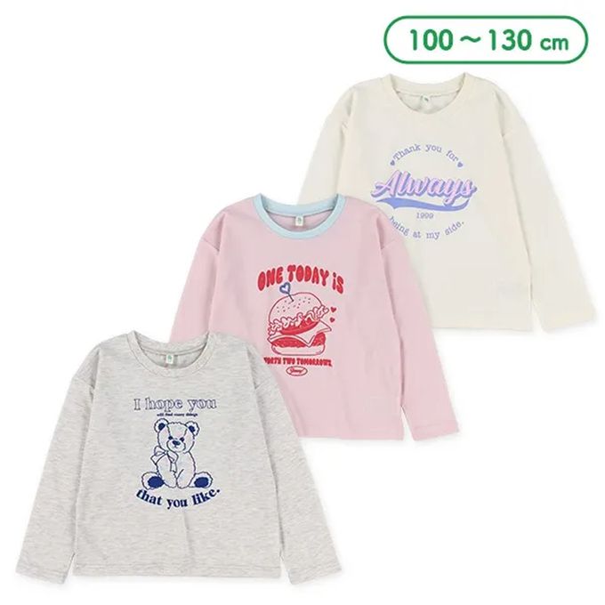 日本西松屋 - 清爽印花薄長袖上衣-美味漢堡-粉紅