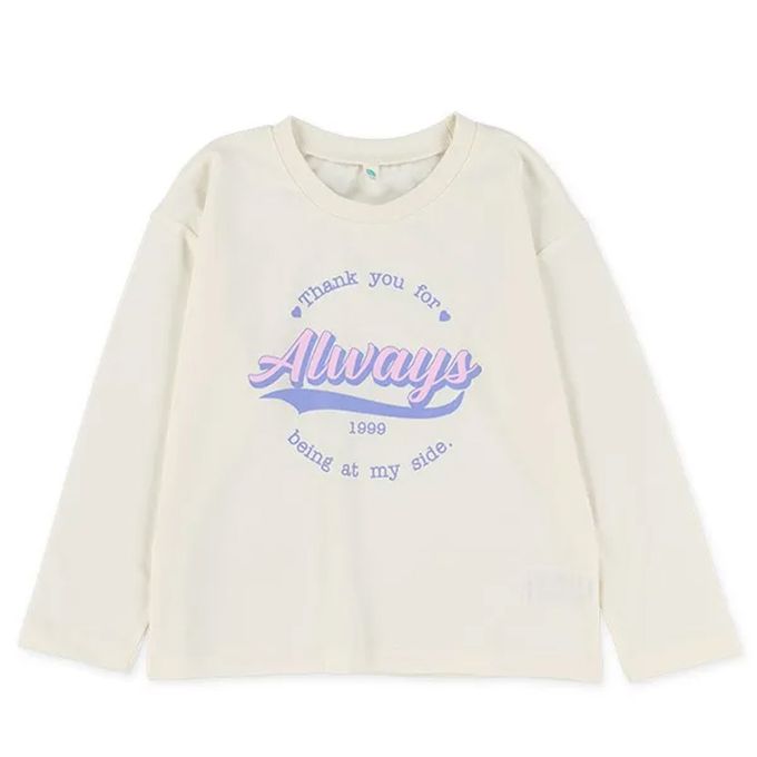 日本西松屋 - 華夫格異素材絲帶長袖上衣-白x藍紫
