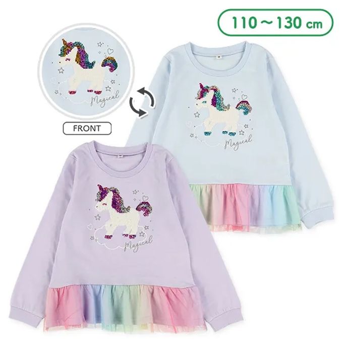 日本西松屋 - 亮片獨角獸繽紛薄紗下擺長袖上衣-水藍
