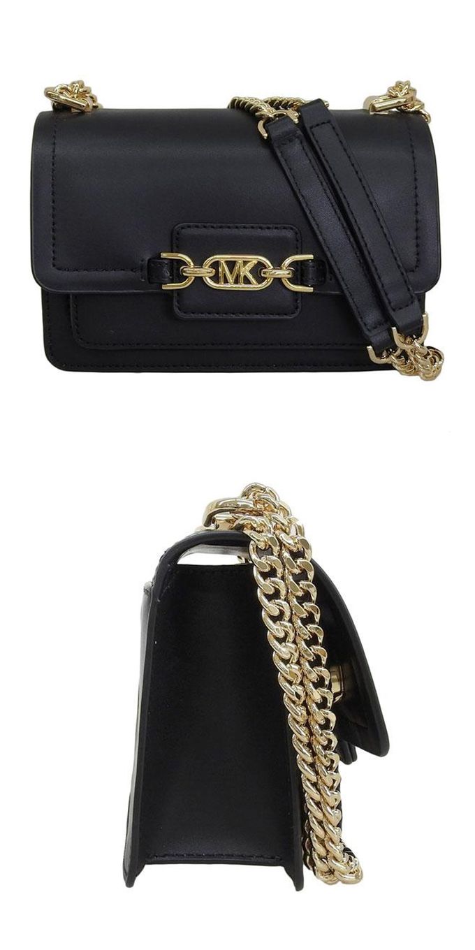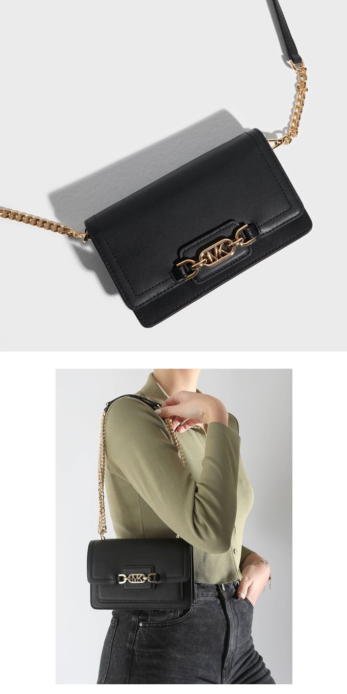 素色皮革翻蓋鍊條小包 (黑)