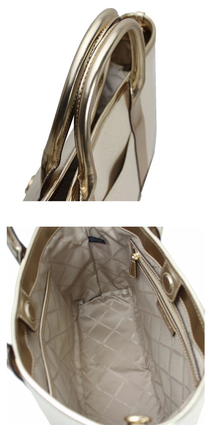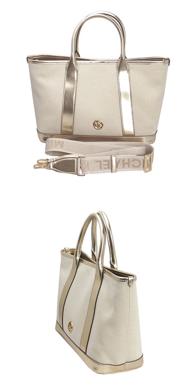 帆布中款兩用托特包 (米白/金)